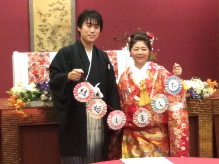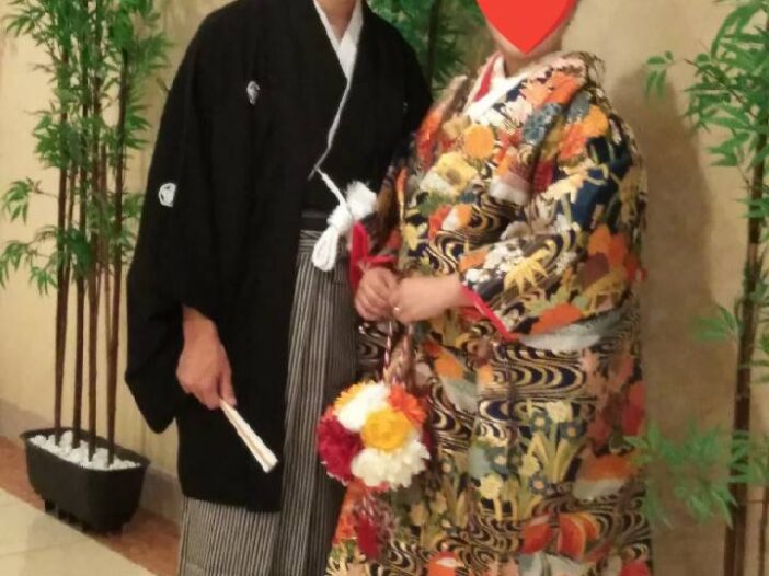10月8日ご自分の色打掛をお持ち込みで、ホテル内長生殿にて挙式、お披露目の会をされました。おば様が和裁師さんだそうで美しいブルーの色打掛で、とてもお似合いになられました。… もっと読む