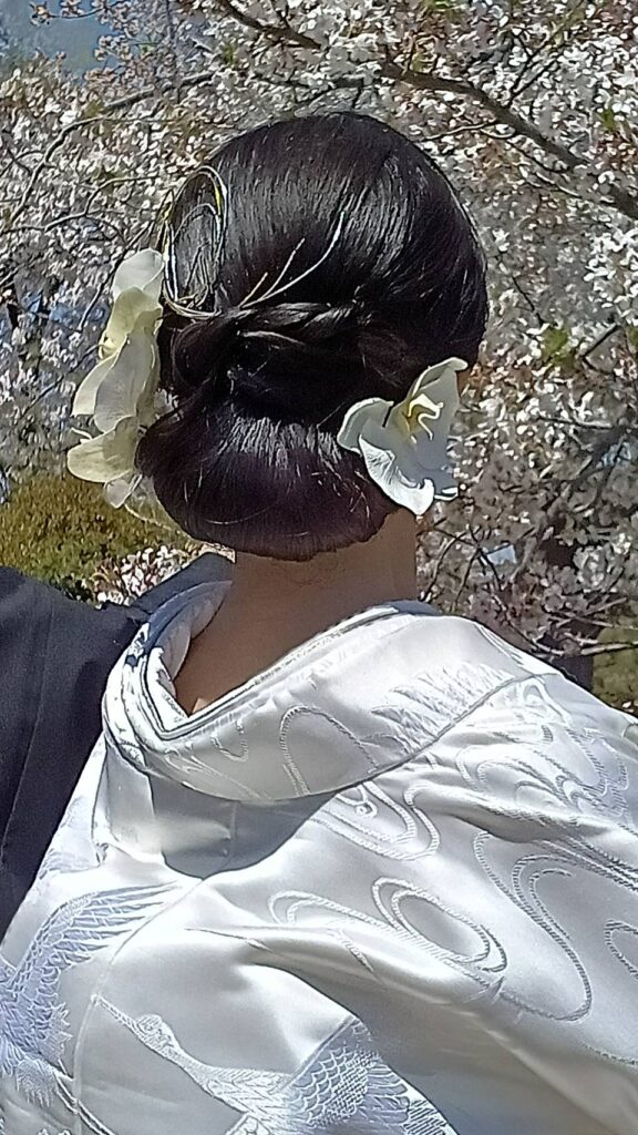 地毛で結い上げた日本髪で挙式